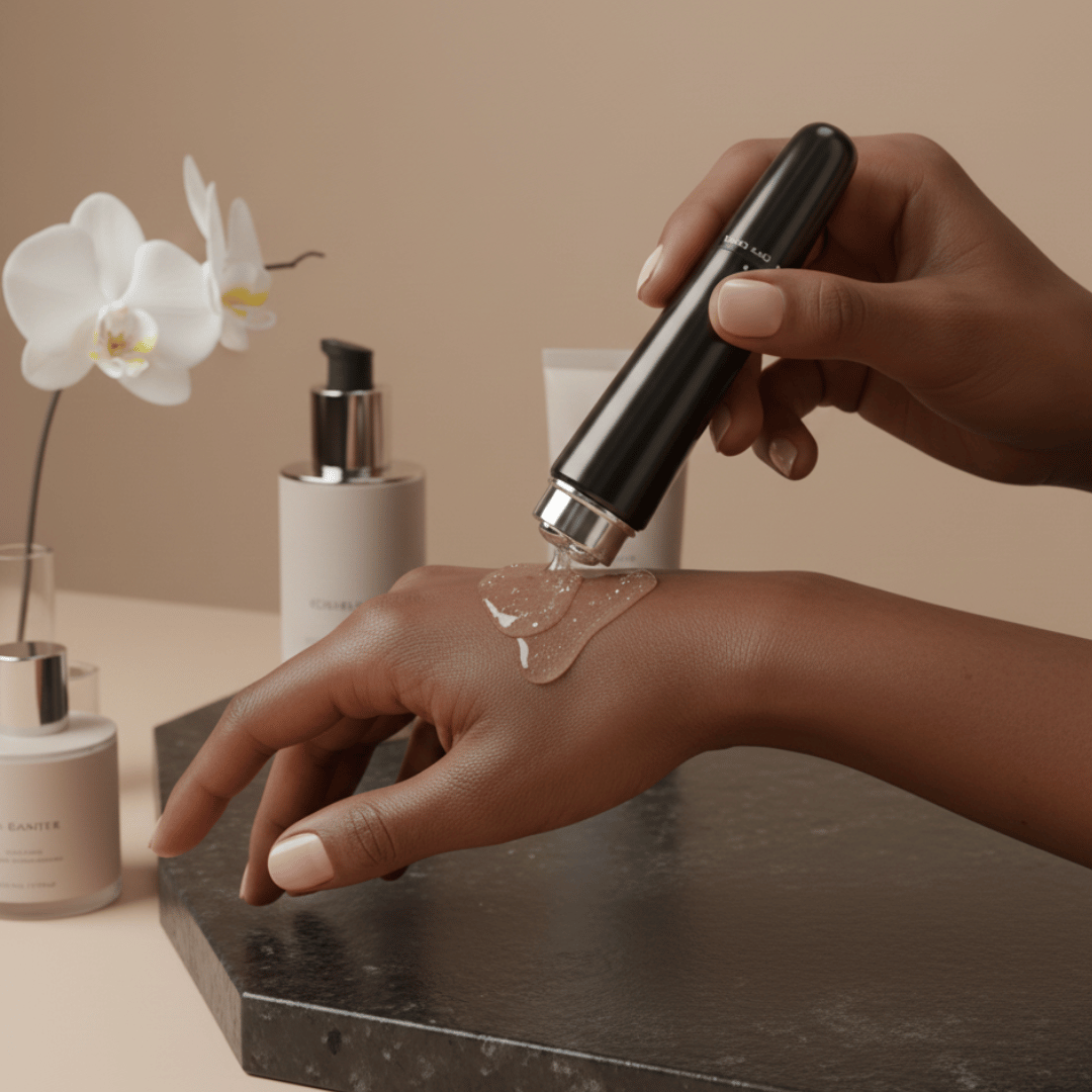 Un outil design, pensé pour les femmes exigeantes — celles qui ne laissent plus une goutte de soin leur échapper.